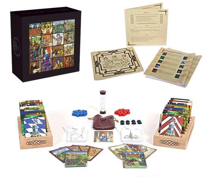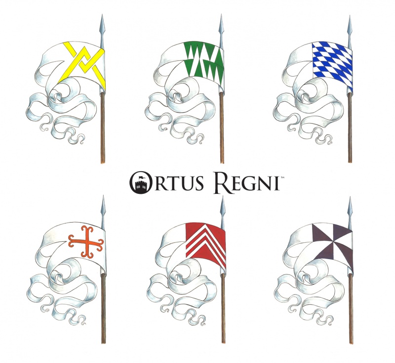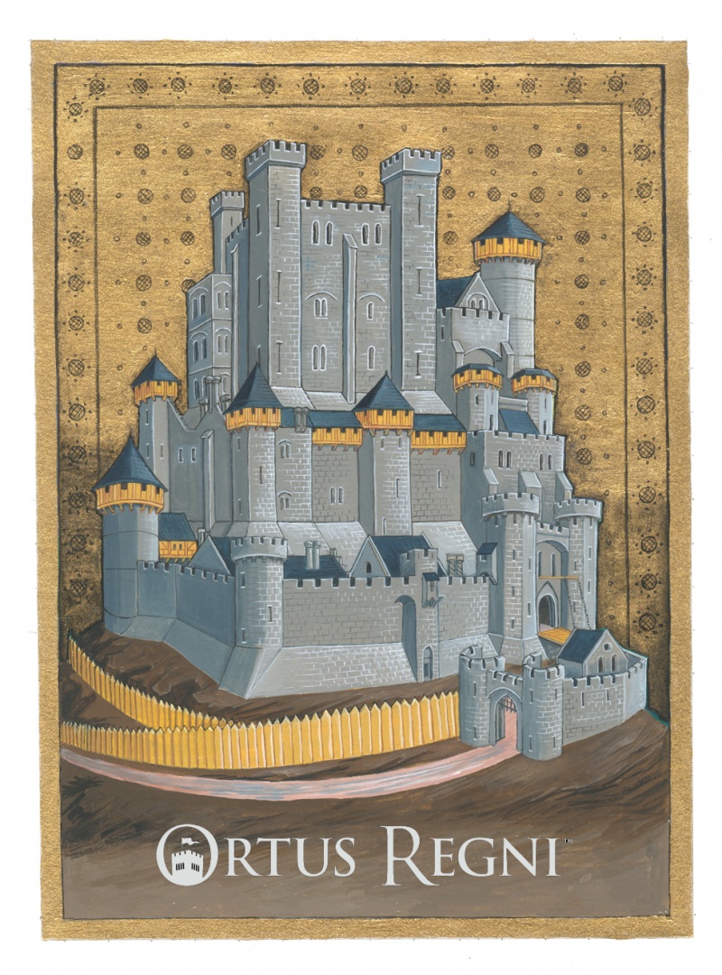 Illustrations pour des cartes à jouer du jeu à thème mediéval Ortus Regni. Le package comprend les lieux de déplacements (Palais, château, cathédrale, église, paysage rurale et scène de marché) + une tour maîtresse + 6 bannières. http://ortusregni.com/